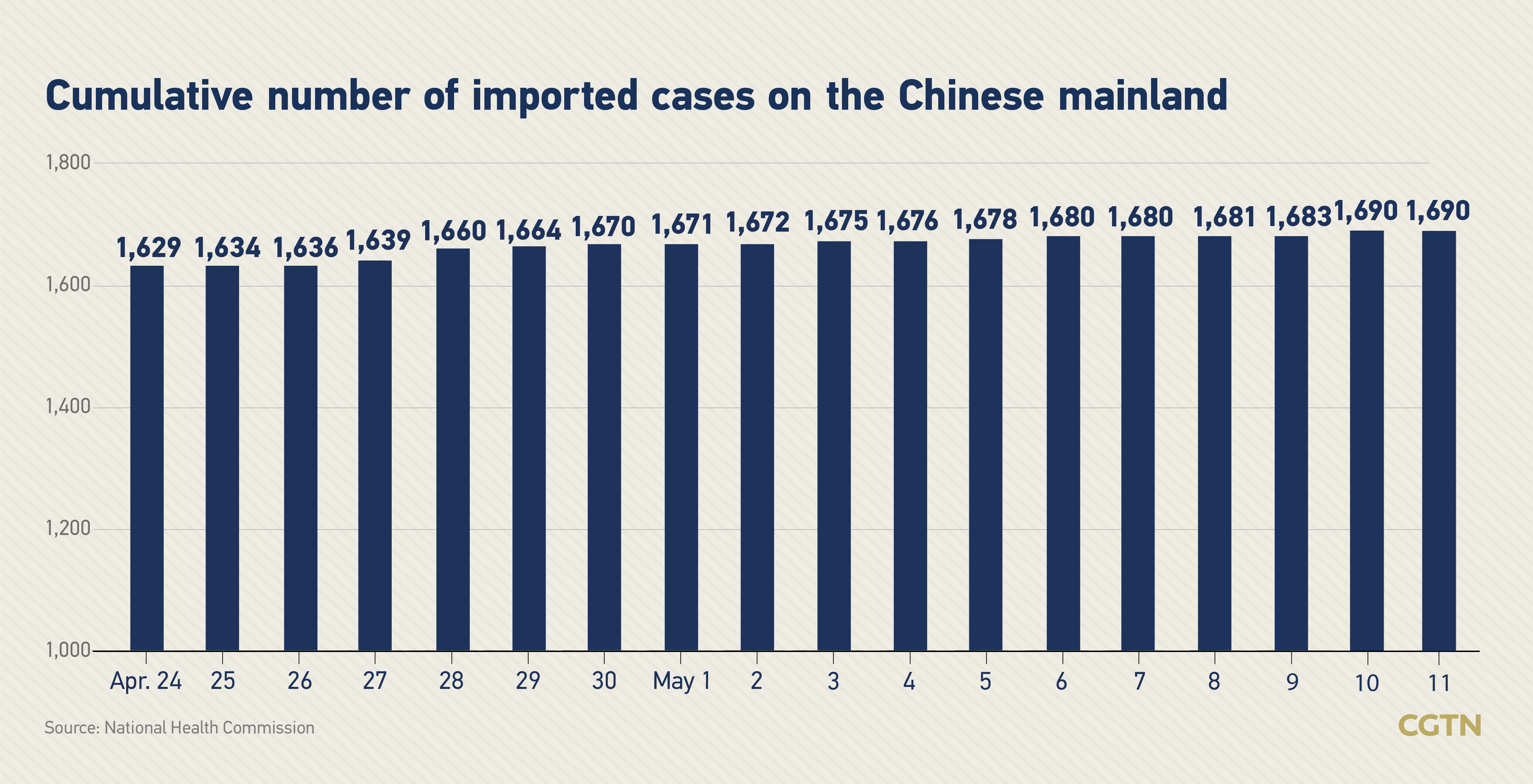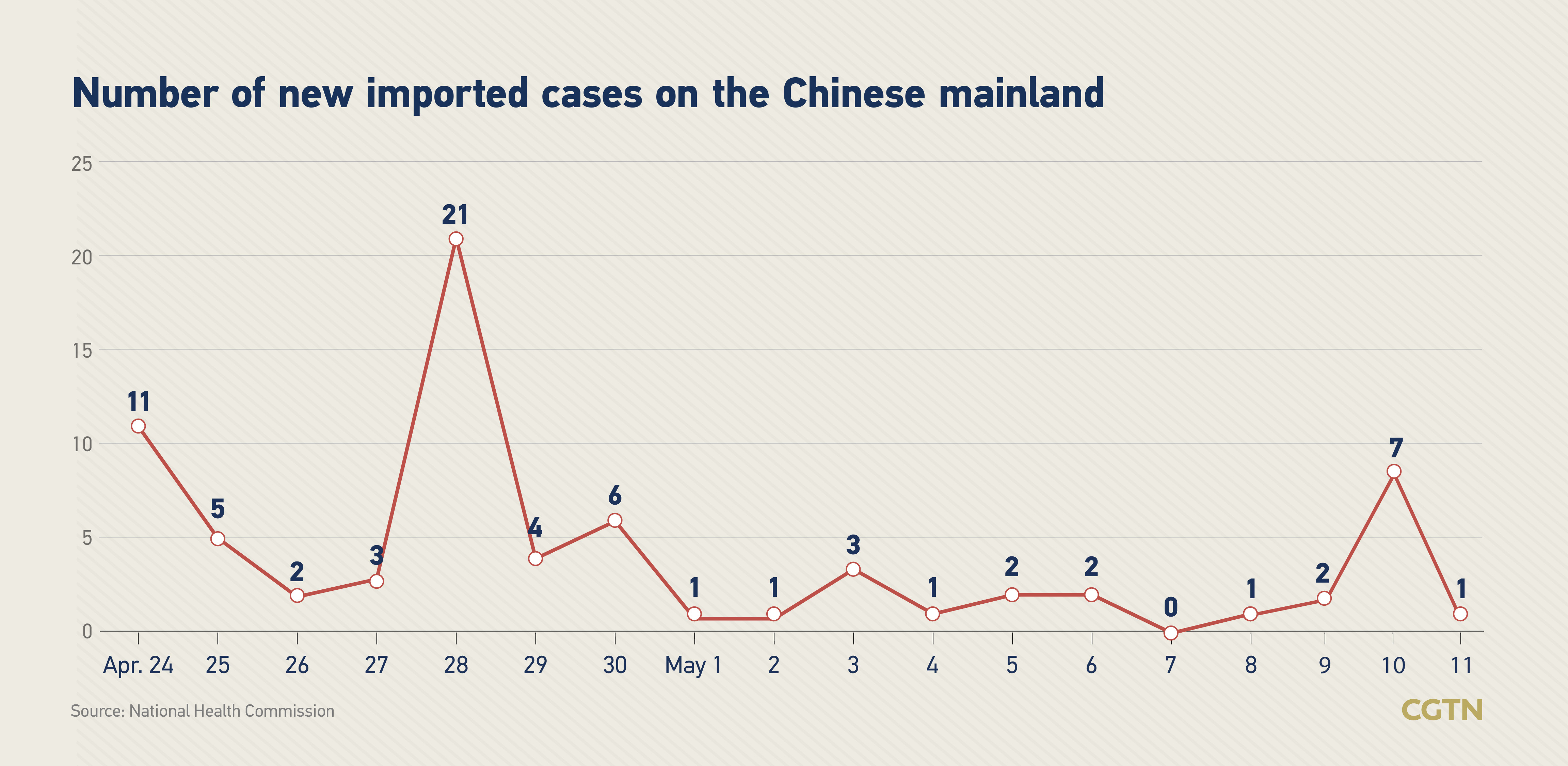 The Chinese mainland reported one new imported COVID-19 case on Monday, and no new deaths, according to China's National Health Commission (NHC).