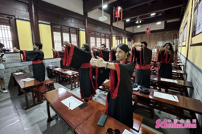 Expats experienced the culture and charm of Hanfu. With dressing the traditional clothing, they performed the ceremony of paying respects to the master and learned the writing of Chinese characters.